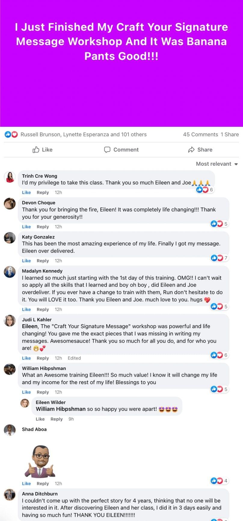Eileen has spoken on stages with Russell Brunson, Tony Robbins, Kevin Harrington and T.D. Jakes, and Dan Kennedy.