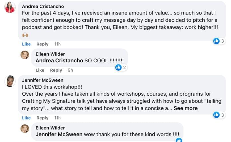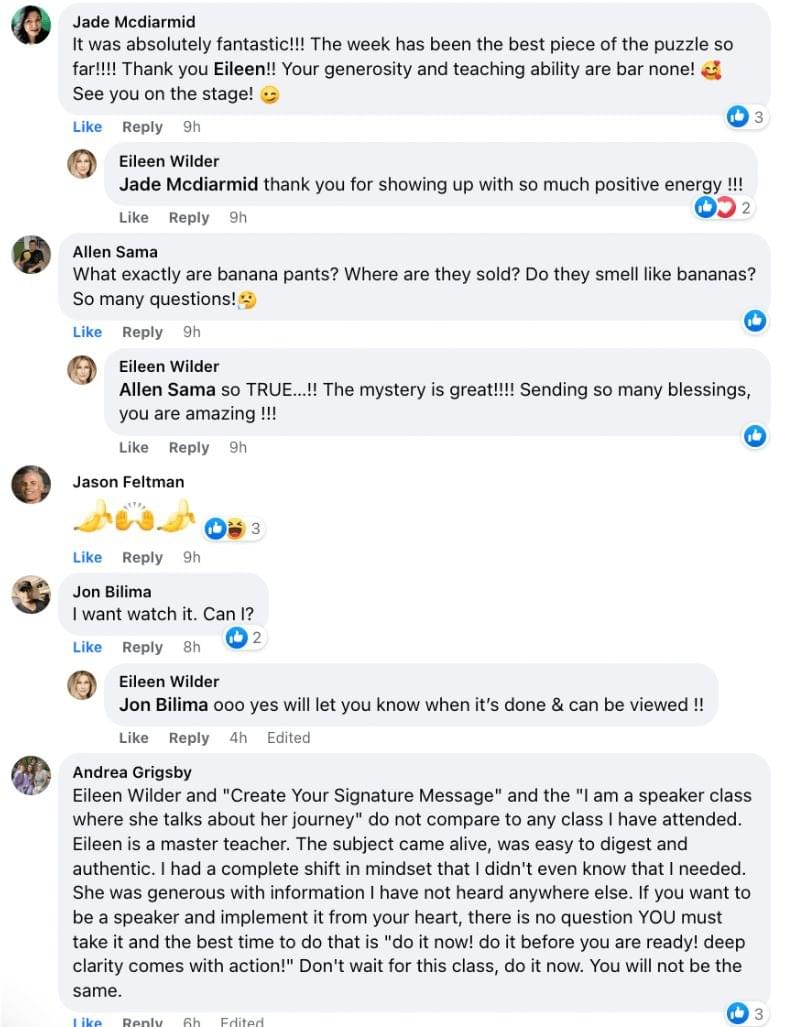 Join Eileen Wilder and the team as they take you on a journey to craft your signature message, and build your profitable small business, while using your gift of communication!
